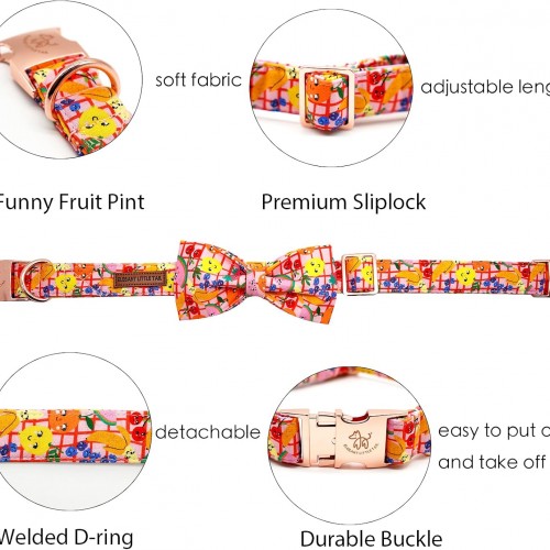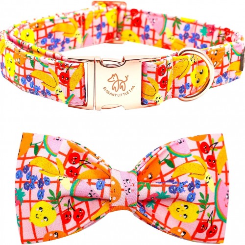Elegant Little Tail Fruit Print Dog Collar – Cute Bowtie for Small to Large Dogs