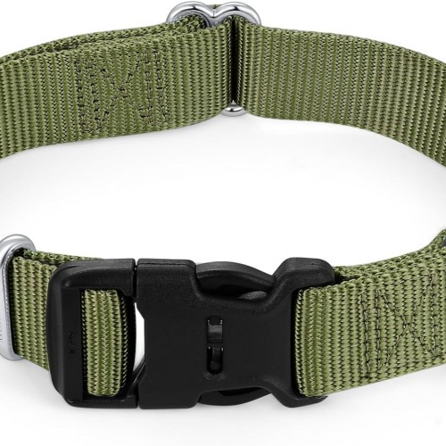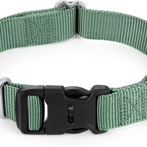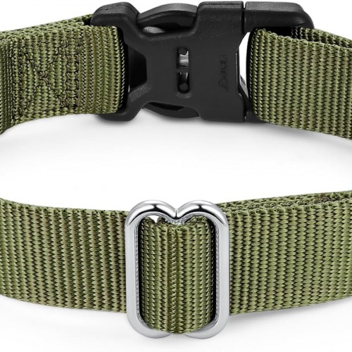 Mikivery Nylon Dog Collar with Quick Release Buckle Soft Adjustable Sturdy for Small Medium Large Dogs Military Green,L