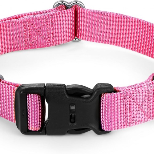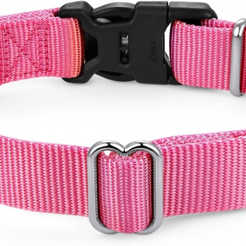 Mikivery Nylon Dog Collar with Quick Release Buckle Soft Adjustable Sturdy for Small Medium Large Dogs Pink,L