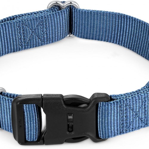 Mikivery Nylon Dog Collar with Quick Release Buckle Soft Adjustable Sturdy for Small Medium Large Dogs Haze Blue,L