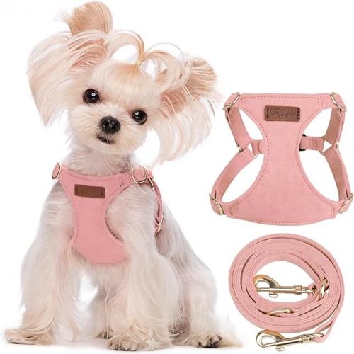 Puppytie No Pull xs Dog Harness with Multifunction Dog Leash,Soft Adjustable No Choke Escape Proof Pet Harness Vest,Pink,XS