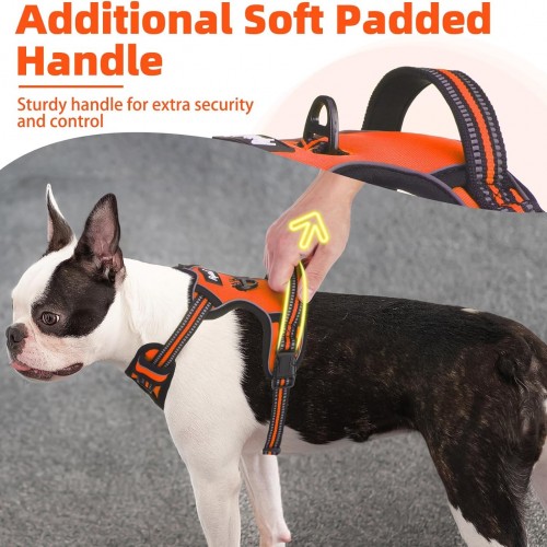 PUPTECK No Pull Dog Harness for Large, Adjustable Reflective Dog Harness with Handle Easy Control, Comfortable Soft Padded Pet Vest Harness for Large Dogs, Orange L