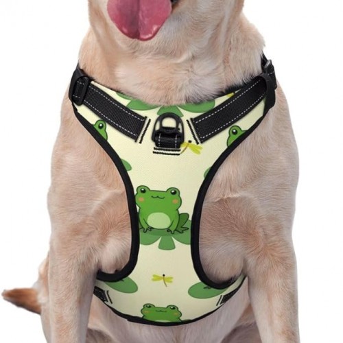Adjustable Soft Mesh Reflective Harness Cute Frog Animal Green Frogs Vest Collar Leash with Traction Rope for Pet Puppy Dog Kitty Kitten