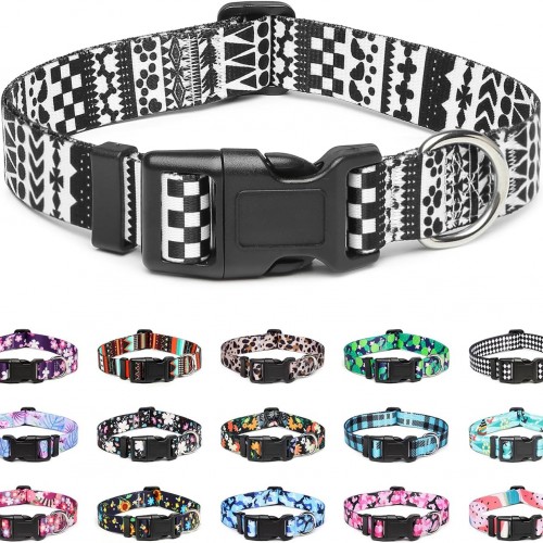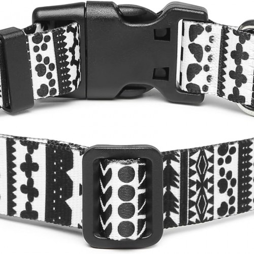 Mercano Adjustable Dog Collar – Special Design Patterns, Soft Nylon Comfortable Durable Pet Collar for Small Medium Large Dogs (S, Black White A)