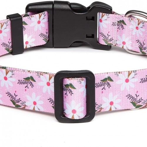 Mercano Adjustable Dog Collar – Special Design Patterns, Soft Nylon Comfortable Durable Pet Collar for Small Medium Large Dogs (M, Pink White Flower)