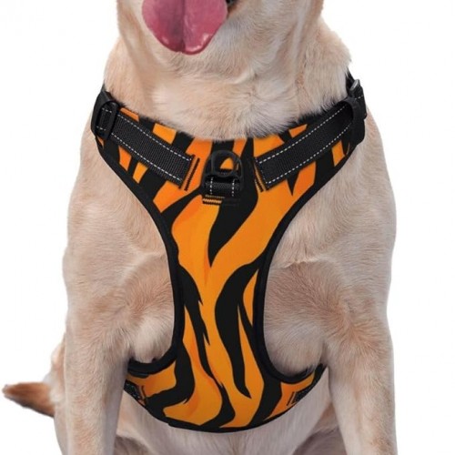 Pet Harness Leash Animal Print Tiger Stripe Dog Reflective Training Vest Adjustable Chest Collar Strap Traction for Outdoor Walking Traveling Vest Harnesses
