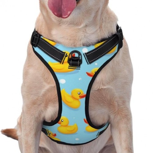Pet Harness Leash Cute Funny Blue Bubbles Yellow Rubber Ducks Dog Reflective Training Vest Adjustable Chest Collar Strap Traction for Outdoor Walking Traveling Vest Harnesses