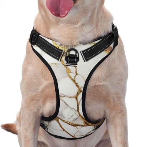 Pet Harness Leash Gold Marble Texture White Dog Reflective Training Vest Adjustable Chest Collar Strap Traction for Outdoor Walking Traveling Vest Harnesses