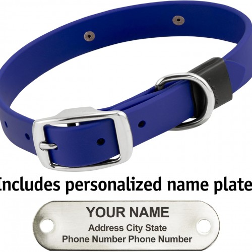 Biothane Custom Dog Collar – Waterproof, Stink-Proof Personalized Collar with Name & Phone Number – Durable, Many Sizes and Colors – Assembled in USA (Royal Blue)