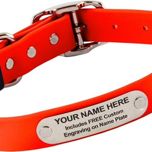 Biothane Custom Dog Collar – Waterproof, Stink-Proof Personalized Collar with Name & Phone Number – Durable, Many Sizes and Colors – Assembled in USA (Hunter Orange)