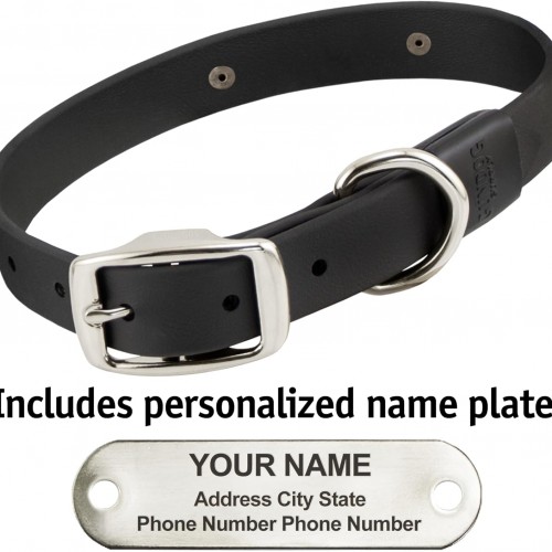 Biothane Custom Dog Collar – Waterproof, Stink-Proof Personalized Collar with Name & Phone Number – Durable, Many Sizes and Colors – Assembled in USA (Black)