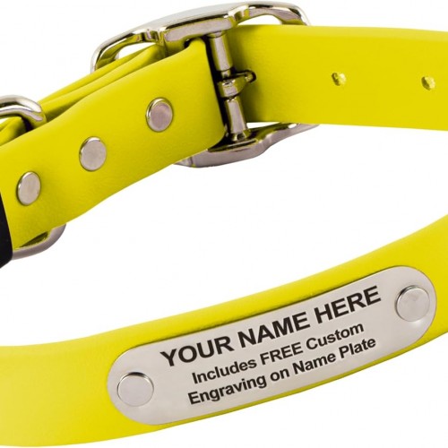 Biothane Custom Dog Collar – Waterproof, Stink-Proof Personalized Collar with Name & Phone Number – Durable, Many Sizes and Colors – Assembled in USA (Bright Yellow)