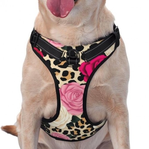 Dog Harness Animal Rose Flowers Cheetah Leopard Print Floral Adjustable Soft Buckle Vest Harness Animal Outdoor Walking Training Traction Rope Vest for Large Medium Small Dog Breeds