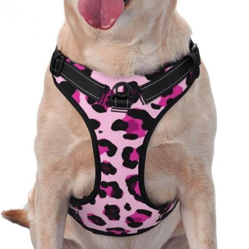 Dog Harness Traction Rope Cheetah Leopard Print Pink Floral Adjustable Breathable Pet Harness Animal Outdoor Walking Training Traction Rope Vest for Small Medium Large Dog