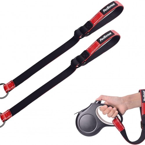 PetBonus 2 Packs Short Dog Leash, Safety Wrist Strap for Retractable Dog Leash, Reflective Design and Adjustable Soft Padded Handle, Extra Layer Security for Pet Stroller (Red, Red)
