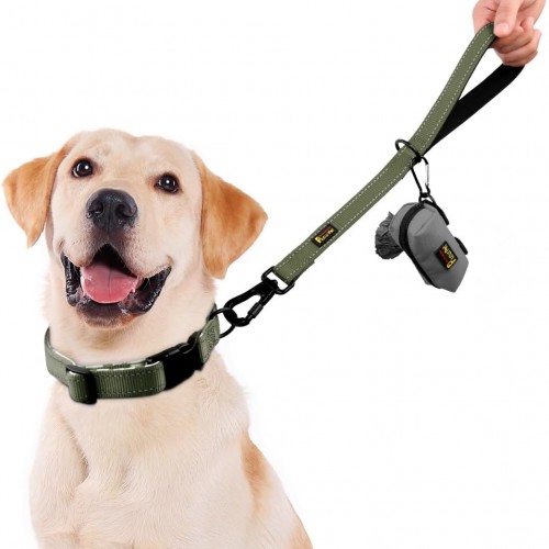 PLUTUS PET Short Training Dog Leash with Padded Handle for Medium Large Dogs,18 Inch Heavy Duty Strong Traffic Leash with Carabiner Clip for Climbing Walking or Guiding Blind(18”,Ranger Green)