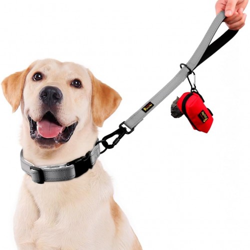 PLUTUS PET Short Training Dog Leash with Padded Handle for Medium Large Dogs,18 Inch Heavy Duty Strong Traffic Leash with Carabiner Clip for Climbing Walking or Guiding Blind(18”,Gray)