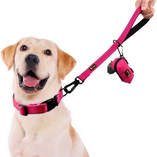 PLUTUS PET Short Training Dog Leash with Padded Handle for Medium Large Big Dogs,18 Inch Heavy Duty Strong Traffic Leash with Carabiner Clip for Climbing Walking or Guiding Blind(18”,Pink