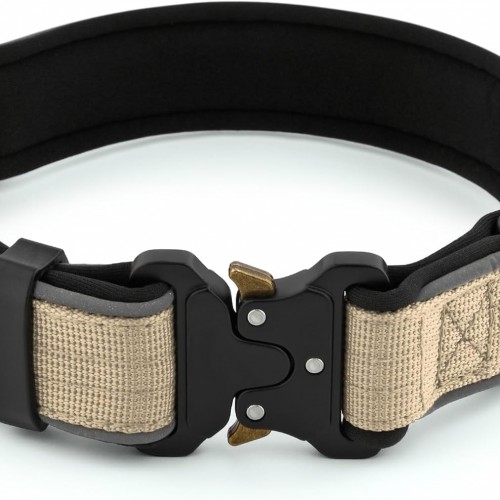 Plutus Pet Tactical Dog Collar, Reflective, Adjustable Heavy Duty Dog Collar, Soft Padded and Comfortable, for Small Medium and Large Dogs (Beige, L)