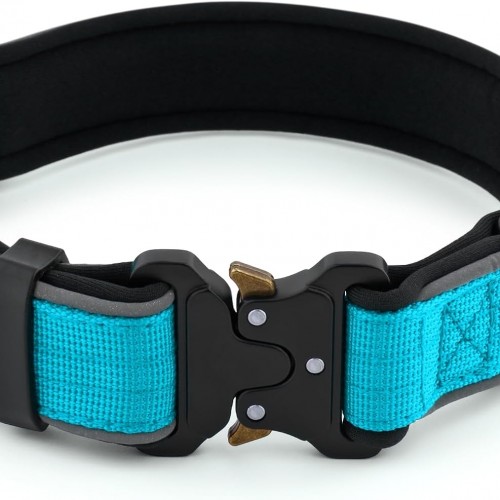 Plutus Pet Tactical Dog Collar, Reflective, Adjustable Heavy Duty Dog Collar, Soft Padded and Comfortable, for Small Medium and Large Dogs (Cyan, L)