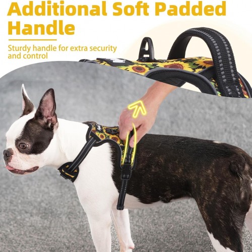 PUPTECK No Pull Dog Harness for Large, Adjustable Reflective Dog Harness with Handle Easy Control, Comfortable Soft Padded Pet Vest Harness for Large Dogs, Sunflower L