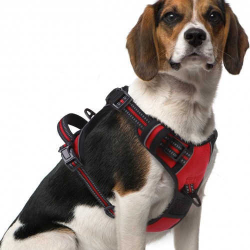 PUPTECK No Pull Dog Harness Medium Sized, Adjustable Reflective Dog Harness with Handle Easy Control, Comfortable Soft Padded Pet Vest Harness for Medium Dogs, Red M