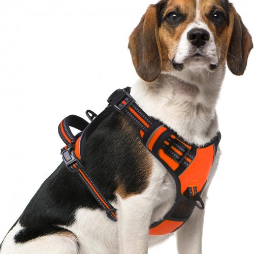 PUPTECK No Pull Dog Harness Medium Sized, Adjustable Reflective Dog Harness with Handle Easy Control, Comfortable Soft Padded Pet Vest Harness for Medium Dogs, Orange M