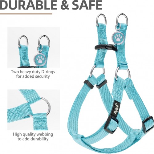 PUPTECK No Pull Dog Harness Soft Adjustable Basic Nylon Step in Puppy Vest Outdoor Walking with ID Tag and A-ir Tag Case, Sky Blue, M