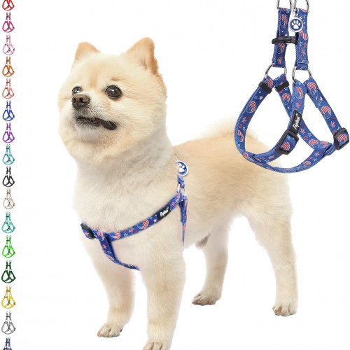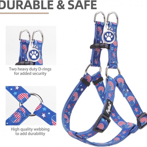 PUPTECK No Pull Dog Harness Soft Adjustable Basic Nylon Step in Puppy Vest Outdoor Walking with ID Tag, American Flag, M