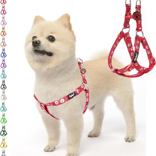 PUPTECK No Pull Dog Harness Soft Adjustable Basic Nylon Step in Puppy Vest Outdoor Walking with ID Tag X-Small Red