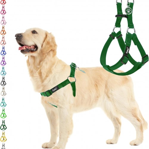 PUPTECK No Pull Dog Harness Soft Adjustable Basic Nylon Step in Puppy Vest Outdoor Walking with ID Tag, Green, M