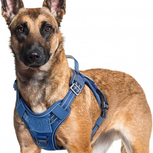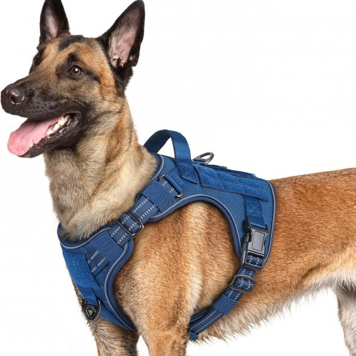 rabbitgoo Dog Harness for Large Dogs No Pull, Tactical Service Pet Vest with Molle and Control Handle, Adjustable and Reflective Military Harness for Easy Walking and Training, Blue, XL