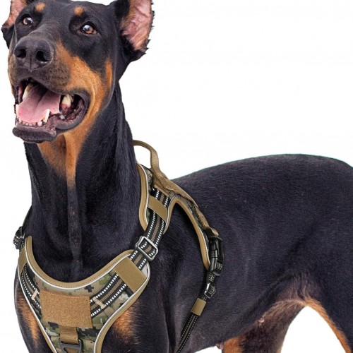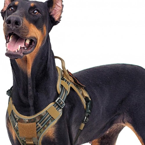 rabbitgoo Dog Harness for Large Dogs No Pull, Tactical Service Pet Vest with Molle and Control Handle, Adjustable and Reflective Military Harness for Easy Walking and Training, Desert camo, XL