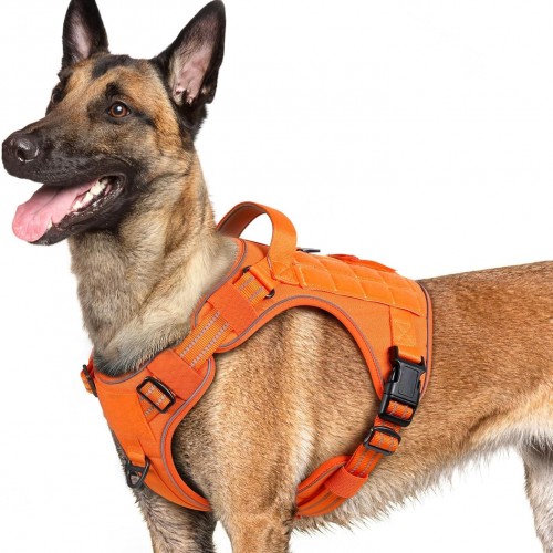 rabbitgoo Dog Harness for Large Dogs No Pull, Tactical Service Pet Vest with Molle and Control Handle, Adjustable and Reflective Military Harness for Easy Walking and Training, Orange, L