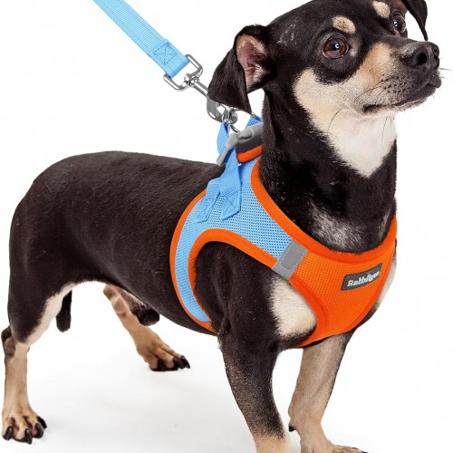 rabbitgoo Dog Harness Small Sized and Leash Set, Step in Soft Light Puppy Vest, Breathable Mesh Pet Harness, Reflective for Safe Easy Walking, Blue & Orange M