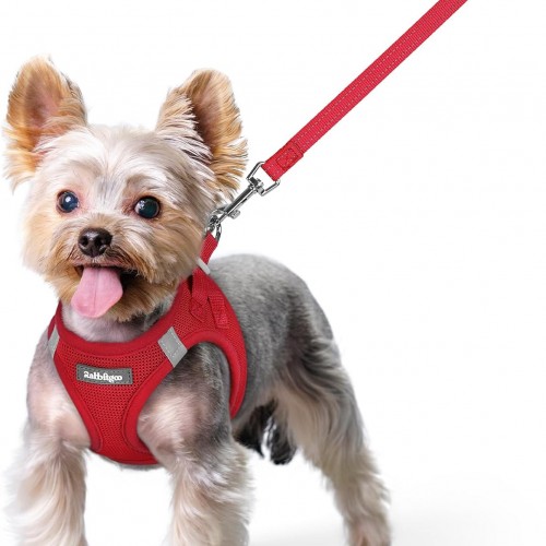 rabbitgoo Dog Harness Small Sized and Leash Set, Step in Soft Light Puppy Vest, Breathable Mesh Pet Harness, Reflective for Safe Easy Walking, Red M