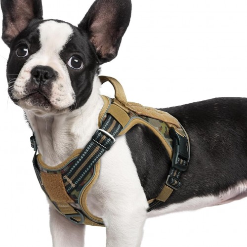 rabbitgoo Dog Harness Small Sized No Pull, Tactical Service Pet Vest with Molle and Control Handle, Adjustable and Reflective Military Harness for Easy Walking and Training, Brown camo, S