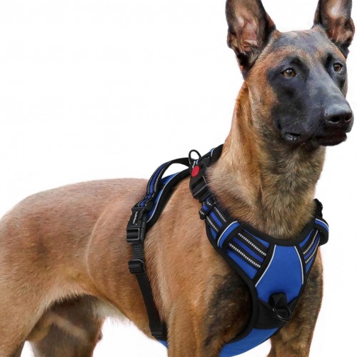 rabbitgoo Dog Harness for Large, No Pull Pet Harness with 3 Buckles, Adjustable Soft Padded Vest with Control Handle, Walking Reflective Pet Vest for Extra Large Dogs, Blue, XL