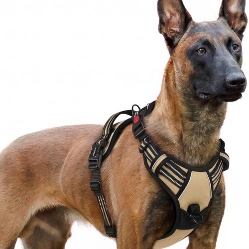 rabbitgoo Dog Harness for Large, No Pull Pet Harness with 3 Buckles, Adjustable Soft Padded Vest with Control Handle, Walking Reflective Pet Vest for Extra Large Dogs, Beige, XL