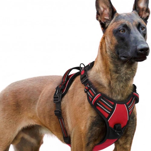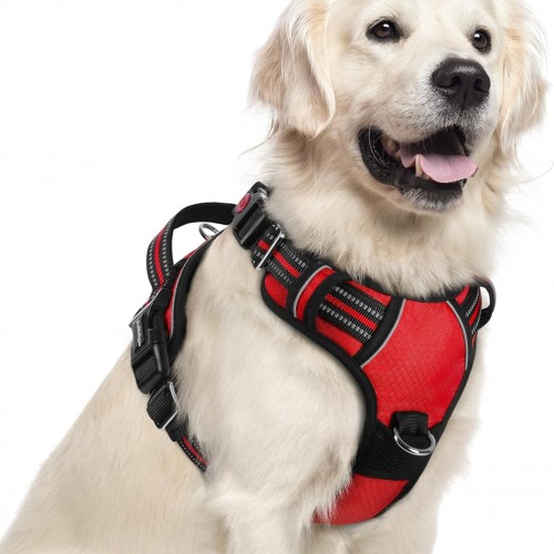 rabbitgoo Dog Harness for Large Dogs, No Pull Pet Vest with 3 Buckles, Adjustable Soft Padded Pet Harness with Easy Control Handle and Reflective Strips, Red, XL