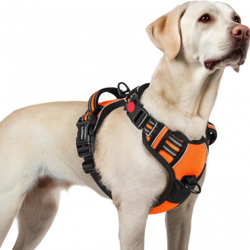 rabbitgoo Dog Harness for Large, No Pull Pet Harness with 3 Buckles, Adjustable Soft Padded Vest with Control Handle, Walking Reflective Pet Vest for Large Dogs, Orange, L