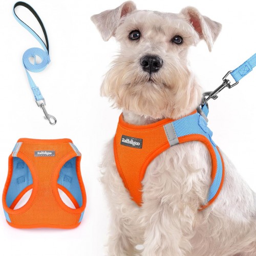 rabbitgoo Dog Harness Medium Sized and Leash Set, Step in Soft Light Puppy Vest, Breathable Mesh Pet Harness, Reflective for Safe Easy Walking, Blue & Orange XXL