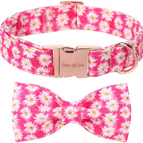 Unique style paws Cartoon Dog Collar with Bow Spring Summer Collar with Flower Rose Daisy for Small Medium Large Boys Girls Dogs