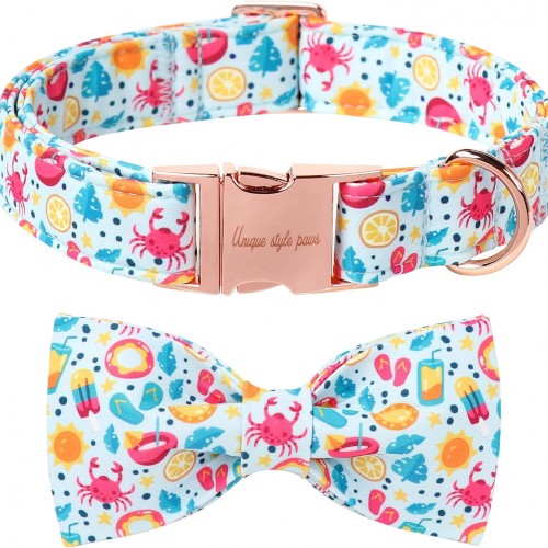 Unique style paws Cartoon Dog Collar with Bow Spring Summer Collar with Flower Lemon Crab for Small Medium Large Boys Girls Dogs
