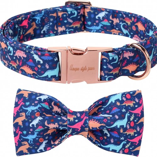Unique style paws Cartoon Dog Collar with Bow Spring Summer Collar with Flower Dinosaur Park for Small Medium Large Boys Girls Dogs