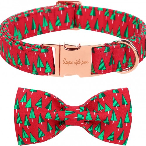 Unique style paws Christmas Dog Collar with Bow Best Winter for Small Medium Large Dogs -Christmas Tree-S