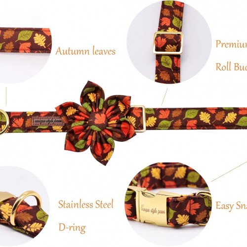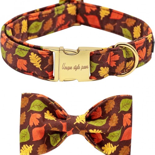 Unique style paws Fall Dog Collar with Bow, Puppy Collar Pet Gift Adjustable Dog Collar Soft and Comfy Bowtie Collars for Large Girl or Boy Dogs