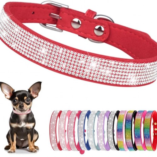 Rhinestone Dog Collar for Small Dogs, Bling Diamond Fancy Crystal Glitter Pretty Jewel Pet Puppy Collars for XXS XS Small Medium Large Breed Girl Dogs Female Cats Kitten, Red S