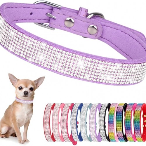 Rhinestone Dog Collar for Small Dogs, Bling Diamond Fancy Crystal Glitter Pretty Jewel Pet Puppy Collars for XXS XS Small Medium Large Breed Girl Dogs Female Cats Kitten, Purple S