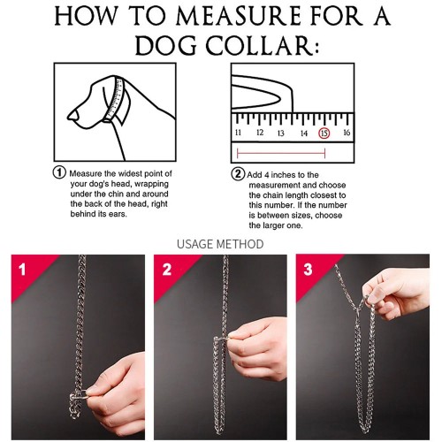 15MM Cuban Link Dog Chain Collar – Silvery/Golden Stainless Steel Training Slip Collar for Strong Dogs